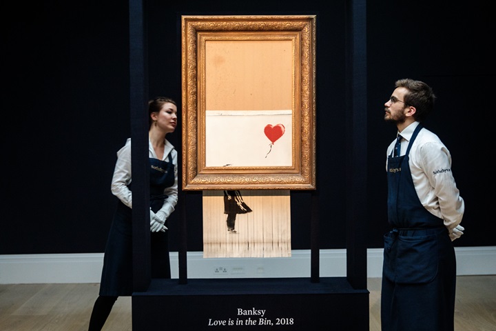Love is in the Bin van kunstenaar Banksy was een aanklacht tegen de kunstmarkt. Nadat het werk in 2018 een miljoen euro opleverde, werd het opzettelijk verwoest. Daardoor werd het nog meer waard: in 2021 werd het voor 22 miljoen euro verkocht.